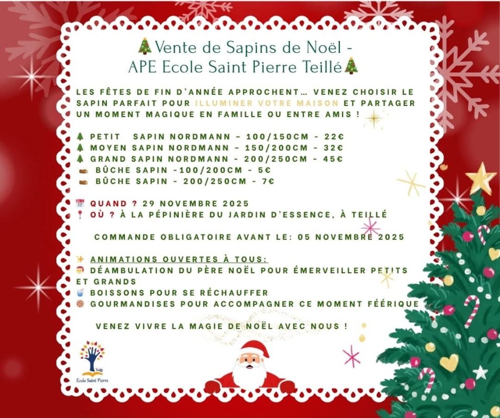 LâAPE de lâĂ©cole Saint Pierre vous propose sa vente de sapins de NoĂ«l đ