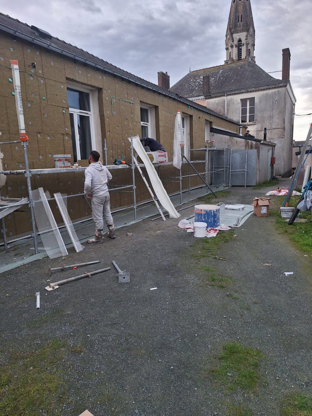 â Isolation du restaurant scolaire : les travaux dâisolation extĂ©rieure avancent Ă bon rythme. Ils permettront de renforcer les performances Ă©nergĂ©tiques du bĂątiment et dâoffrir de meilleures conditions d'accueil et de travail aux enfants et au personnel.