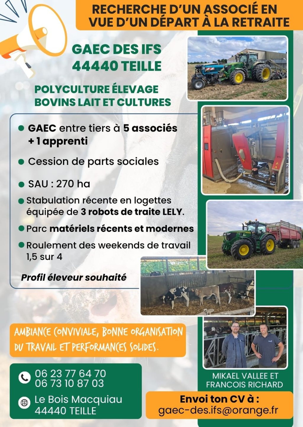 GAEC DES IFS - RECHERCHE UN ASSOCIÉ EN VUE D'UN DÉPART EN RETRAITE