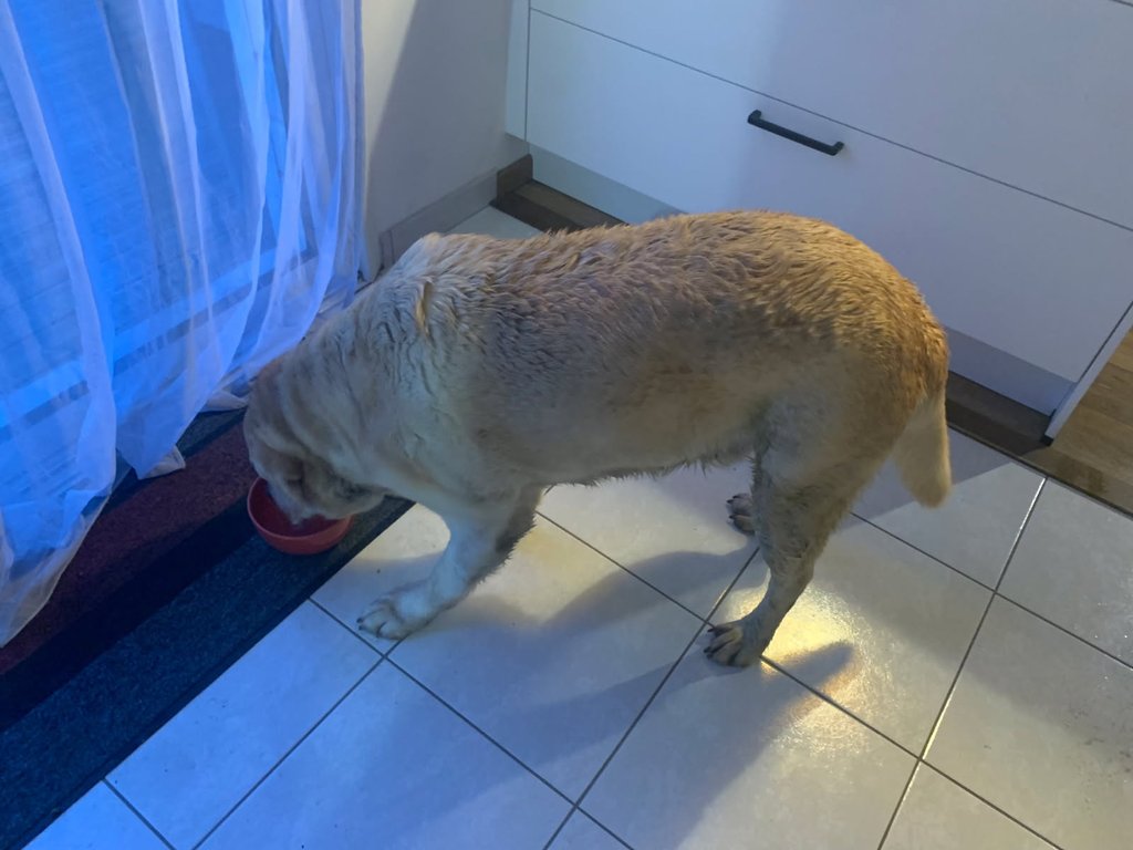Chien mĂąle labrador trĂšs gentil. Collier rouge gps.