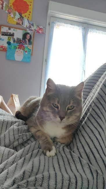 Nous recherchons notre chat gribouille qui est grise avec le ventre blanc, elle a 8 ans et est un peu peureuse, elle a disparu du lotissement de la Chênaie. Elle porte un collier antiparasitaire rouge. Si vous l'apercevez merci de me contacter au 0780441112.