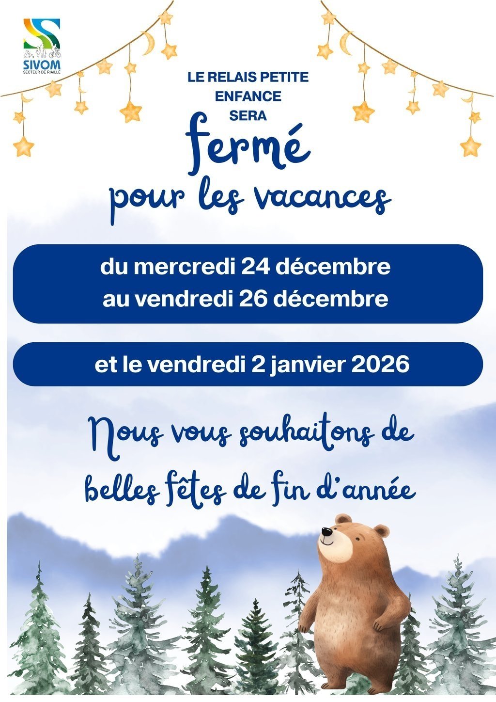 Le RPE sera fermé du mercredi 24 décembre au vendredi 26 décembre, puis le vendredi 2 janvier.
