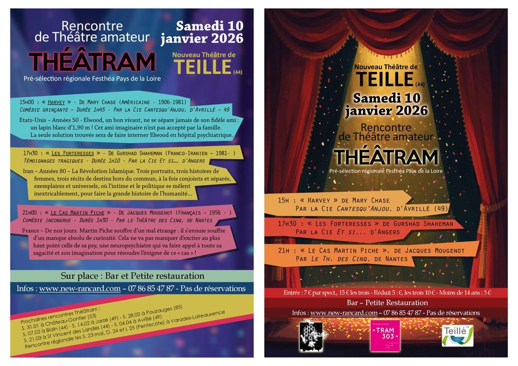 non pas UN, non pas DEUX, mais TROIS rendez-vous théâtraux au Théâtre de Teillé ! ... et tout ça LE MÊME JOUR !