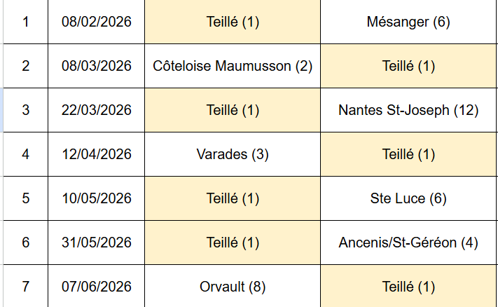 MATCHS À TEILLÉ DE TENNIS DE TABLE CE DIMANCHE 08 FÉVRIER🏓