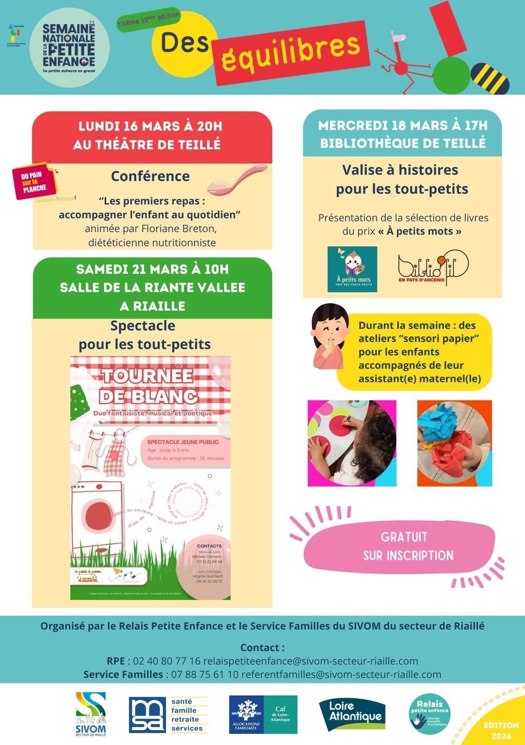Le Rpe Sivom Riaillé et le service familles du SIVOM du Secteur du Secteur de Riaillé s'associent pour vous proposer un joli programme dans le cadre de la semaine nationale de la Petite Enfance !