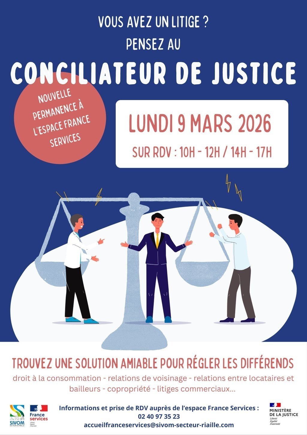 đąđNOUVEAU : PERMANENCE D'UN CONCILIATEUR DE JUSTICE Ă L'ESPACE FRANCE SERVICES