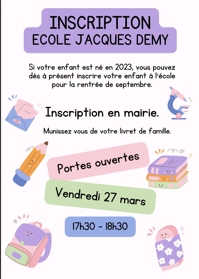 đ Comment s'inscrire ? Rendez-vous dĂšs maintenant en mairie avec votre livret de famille.