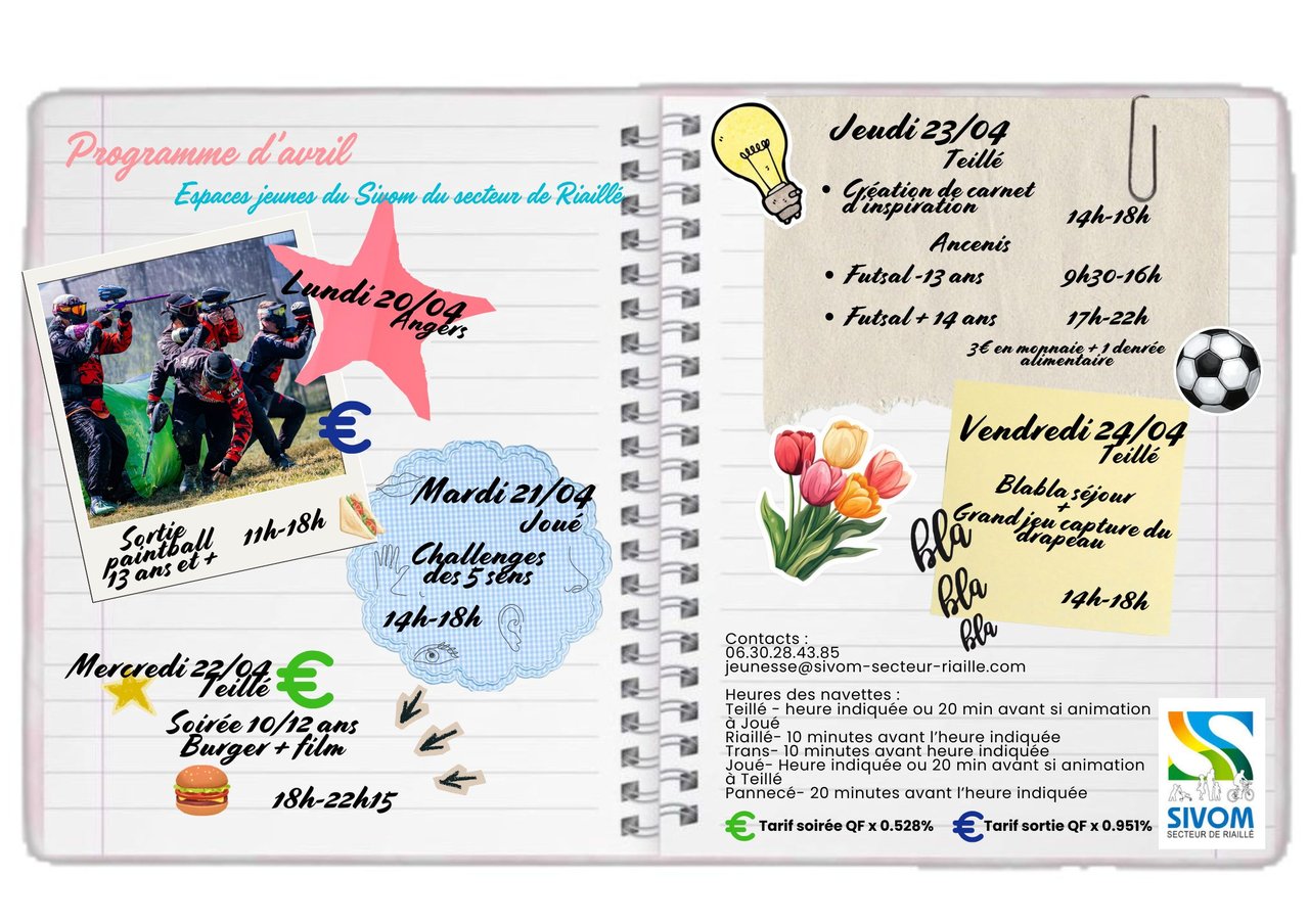 Voici le programme des espaces jeunes du Sivom du secteur de Riaillé pour les vacances d'avril 2026 !