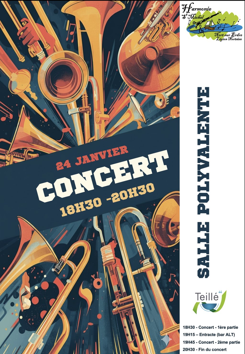 En partenariat avec lâHarmonie Saint-Michel de Nort-sur-Erdre, la MunicipalitĂ© de TeillĂ© est heureuse de vous inviter au concert le samedi 24 janvier 2026 Ă 18H30 Ă la Salle Polyvalente.