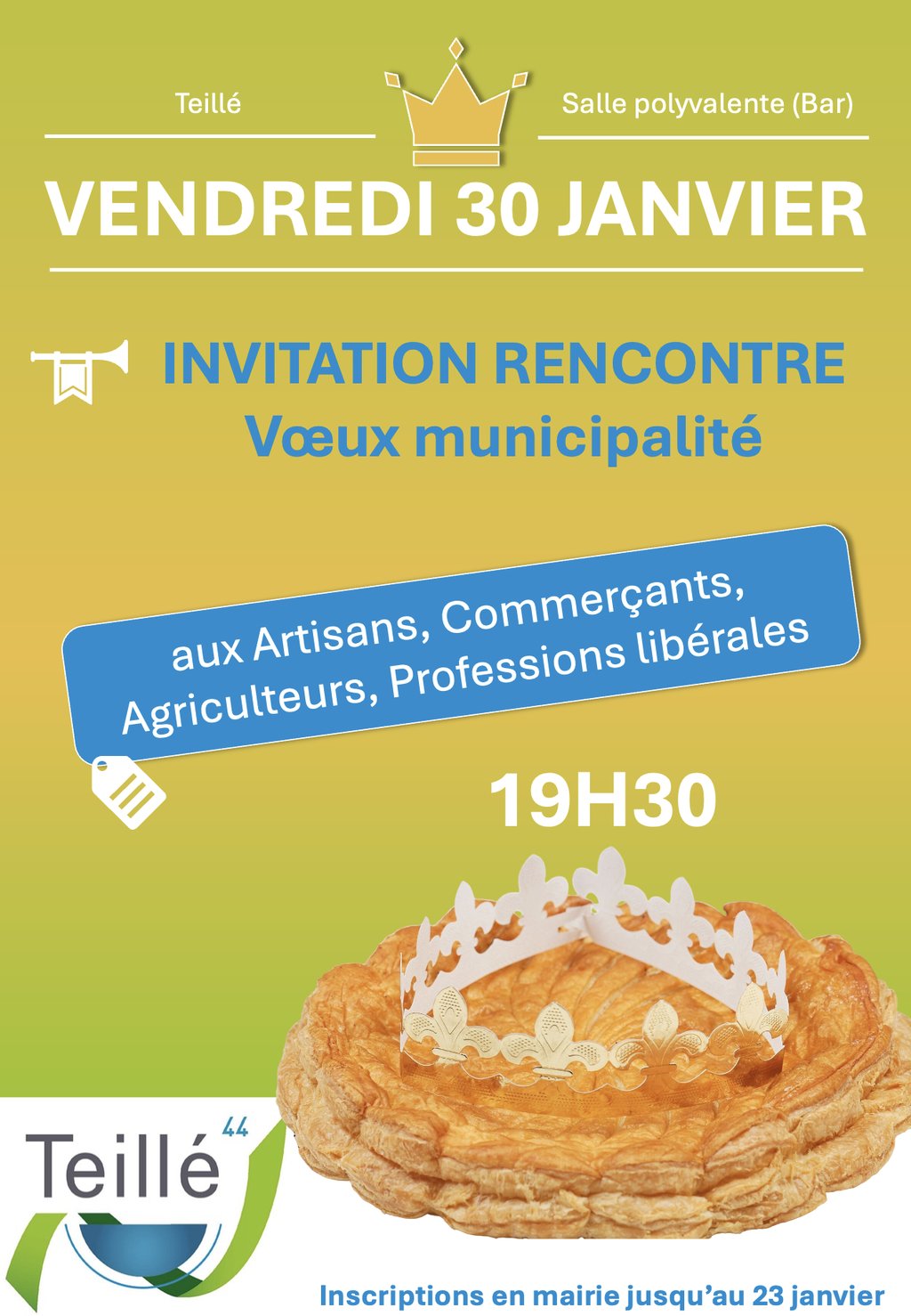 Ă lâoccasion des vĆux de la municipalitĂ©, les Ă©lus invitent les artisans, commerçants, professions libĂ©rales et agriculteurs Ă un moment dâĂ©change et de convivialitĂ© autour de la galette des rois.