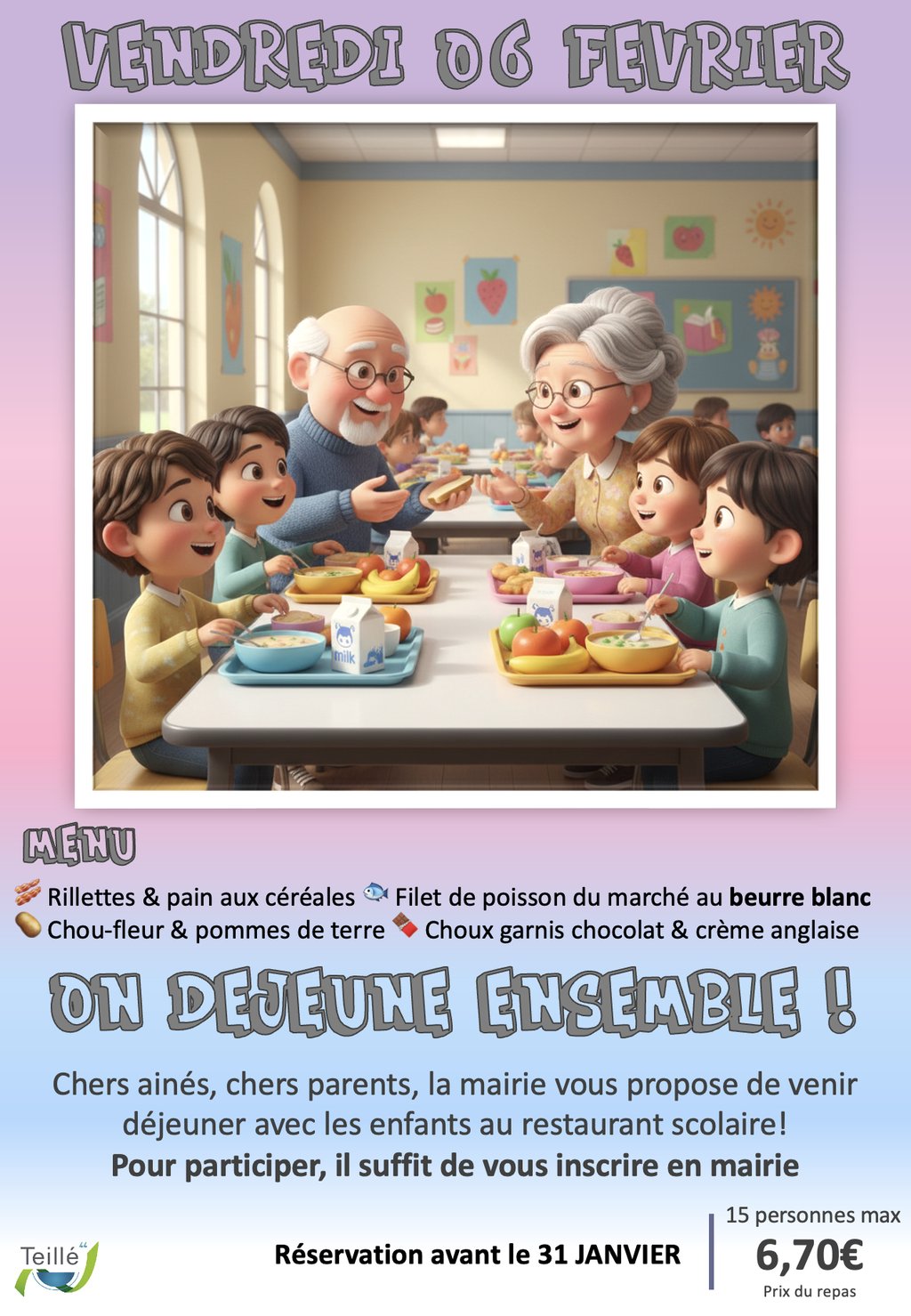 Le mardi 06 février, le restaurant scolaire de Teillé ouvre grand ses portes pour un moment de partage inédit. Aßnés et parents, venez déjeuner aux cÎtés des enfants !