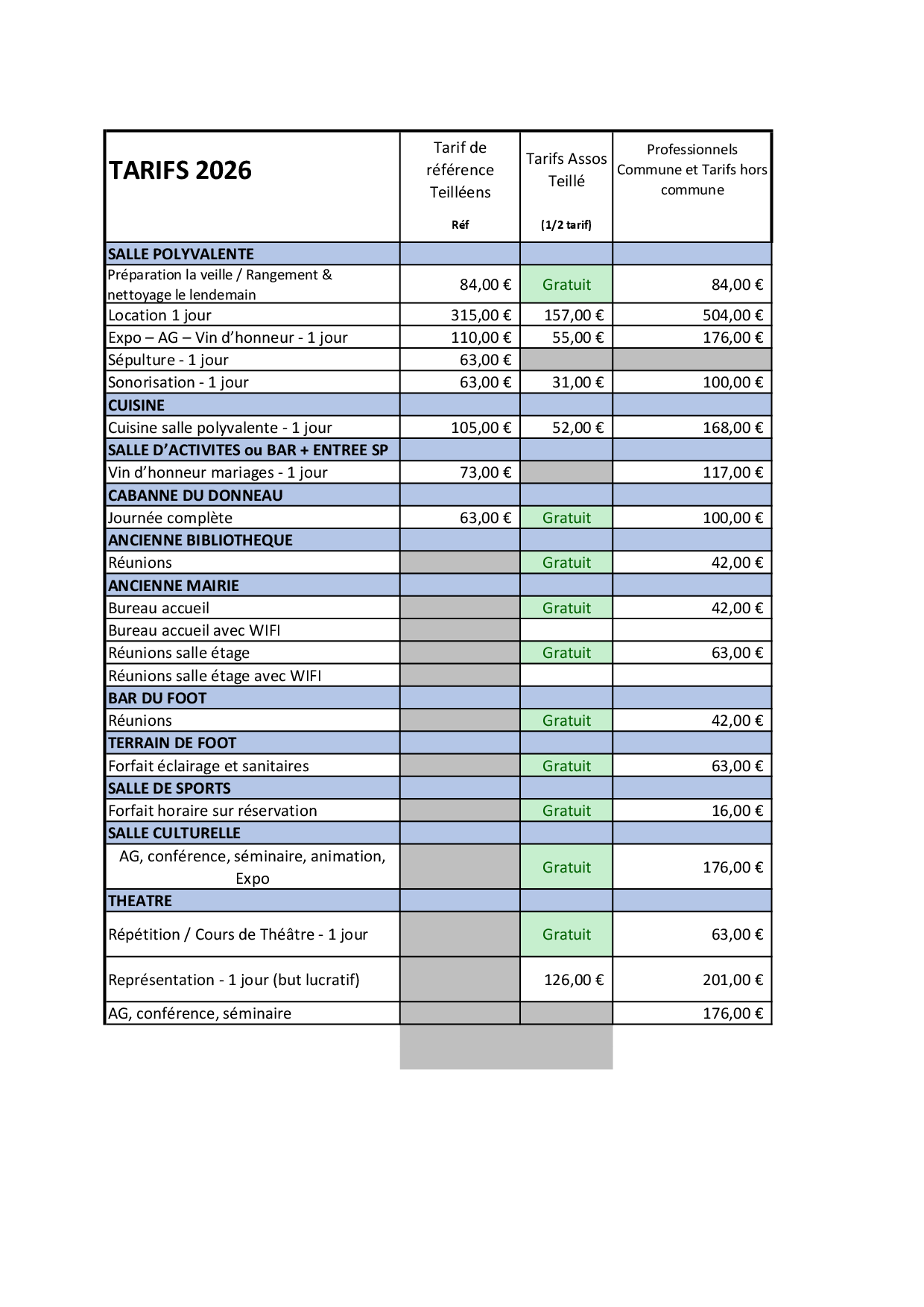 La salle polyvalente a une capacité de 300 places assisses (50 tables de 4 ou 6 personnes rectangulaires, 5 tables rondes de 8 personnes).